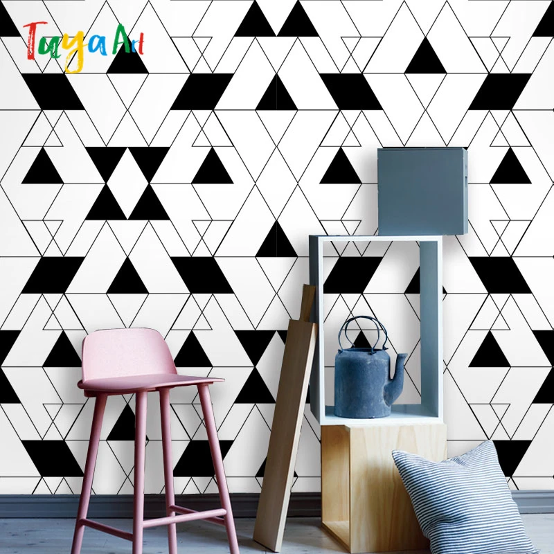 Cutom壁紙mural壁に卸売シンプルな黒と白幾何用オフィスリビングルームベッドルームmural壁紙 Paper Mural Wall Paper Muralmural Wallpaper Aliexpress